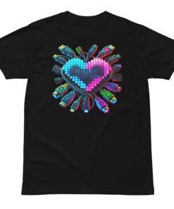 Celebrate the fusion of technology and passion with the “Love Pixel” T-shirt. This design symbolizes the deep connection between digital artistry and human creativity, where every pixel pulses with energy.